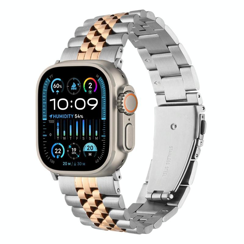 For Apple Watch 46mm / 49mm / 45mm / 44mm Quick Release Five-bead Metal Watch Band(Silver Rose Gold)
