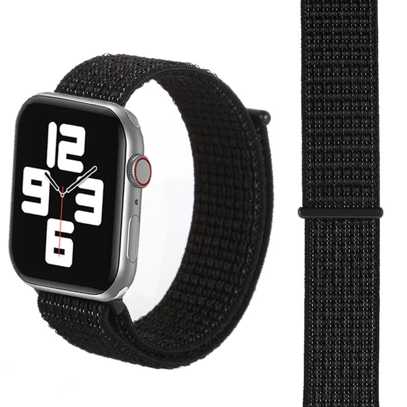 Για Apple Watch 46mm / 49mm / 45mm / 44mm Απλό Μοντέρνο Λουρί Ρολογιού από Νάιλον με Μαγικό Αυτοκόλλητο (Μαύρο της νύχτας)