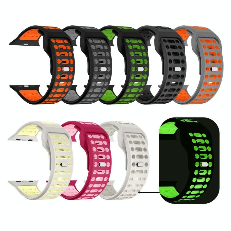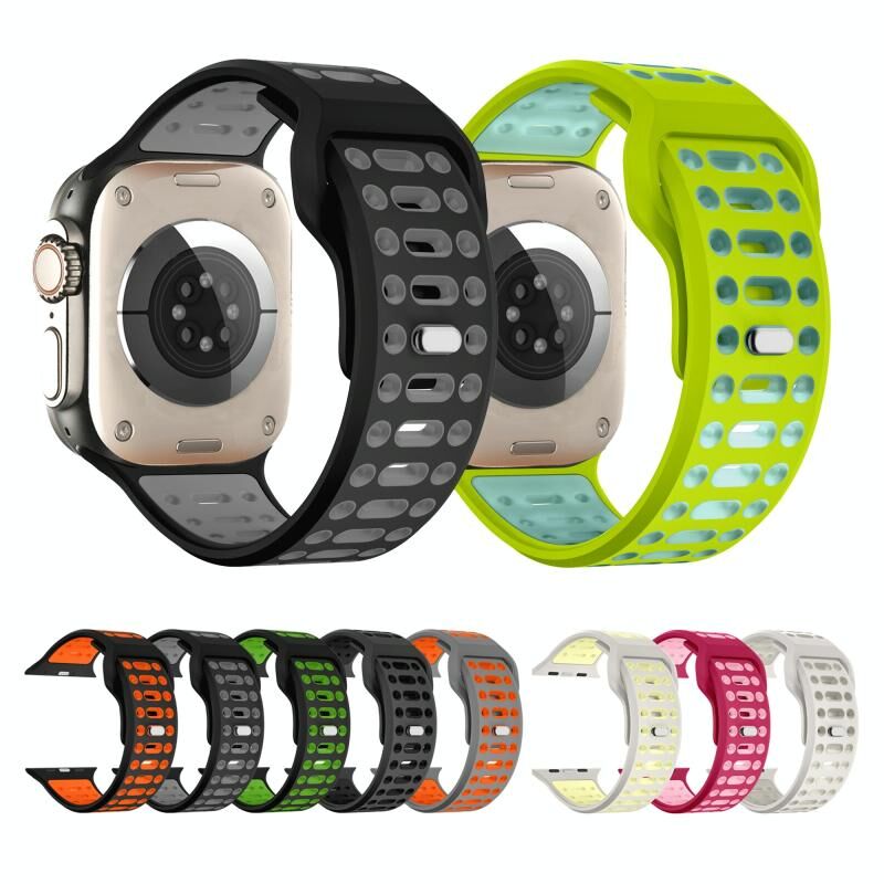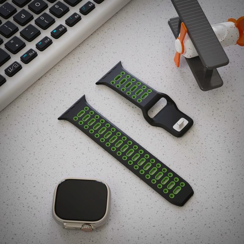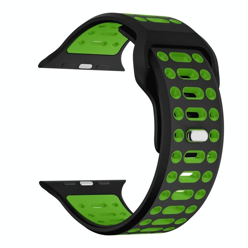 Για Apple Watch 46mm / 49mm / 45mm / 44mm Λουράκι Σιλικόνης για Ρολόι με Μονό Καρφί, Διχρωμία και Πολλαπλές Οπές (Μαύρο πράσινο)