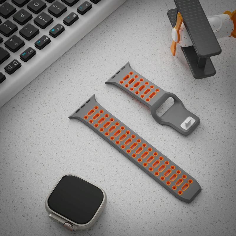 Για Apple Watch 46mm / 49mm / 45mm / 44mm Λουράκι Σιλικόνης για Ρολόι με Μονό Καρφί, Διχρωμία και Πολλαπλές Οπές (Μαύρο Γκρι)
