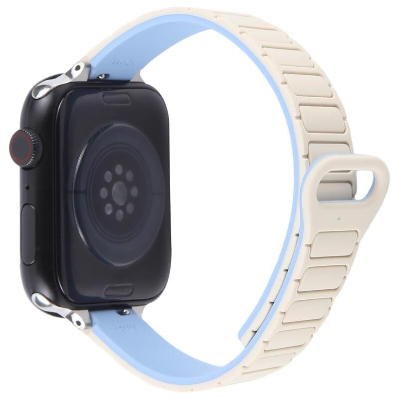 For Apple Watch 46mm / 49mm / 45mm / 44mm Slim I-shaped Magnetic Silicone Watch Band(Silver+Blue White)