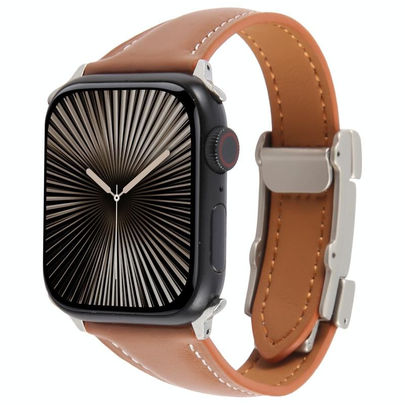 Λουρί ρολογιού για Apple Watch 46mm / 49mm / 45mm / 44mm, λεπτό με μαγνητικό κούμπωμα από γνήσιο δέρμα (Καφέ)
