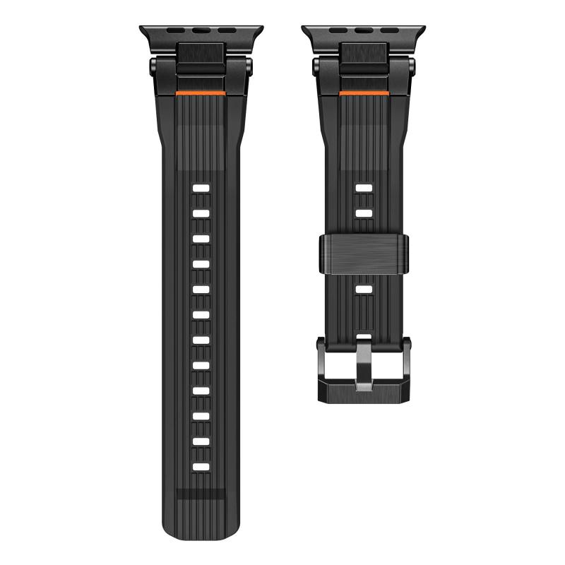 For Apple Watch 46mm / 49mm / 45mm / 44mm Stainless Steel Connector Vertical Grain TPU Watch Band(Black)