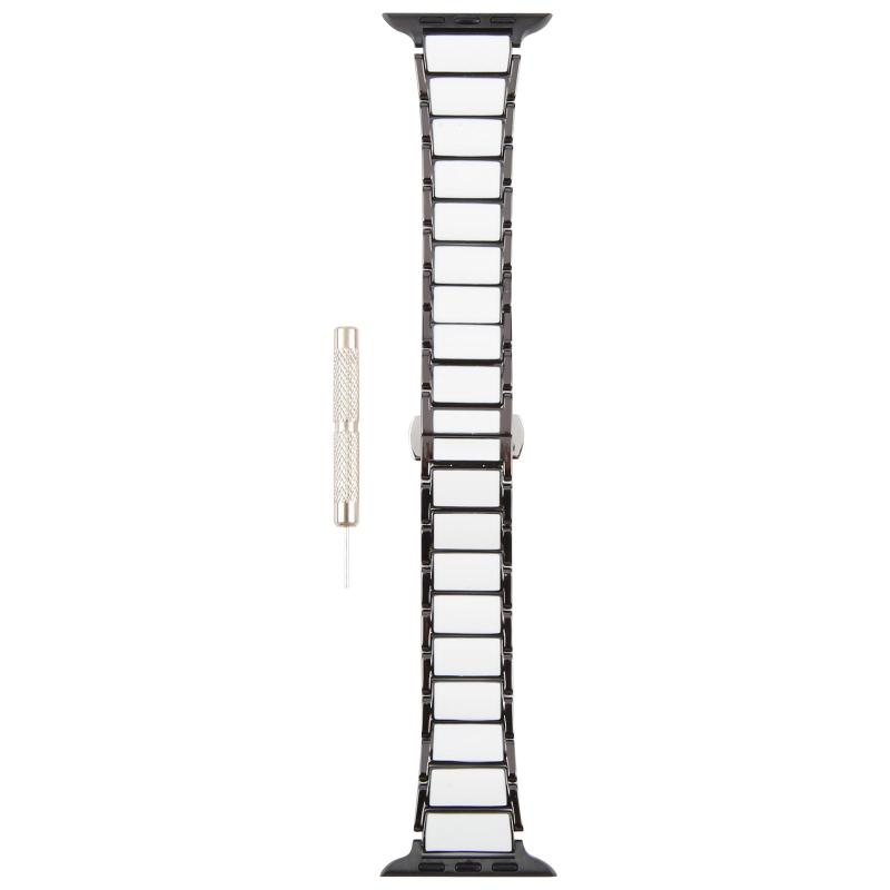 For Apple Watch 46mm / 49mm / 45mm / 44mm Three Beads Ceramics 18mm Steel Watch Band(Black White)