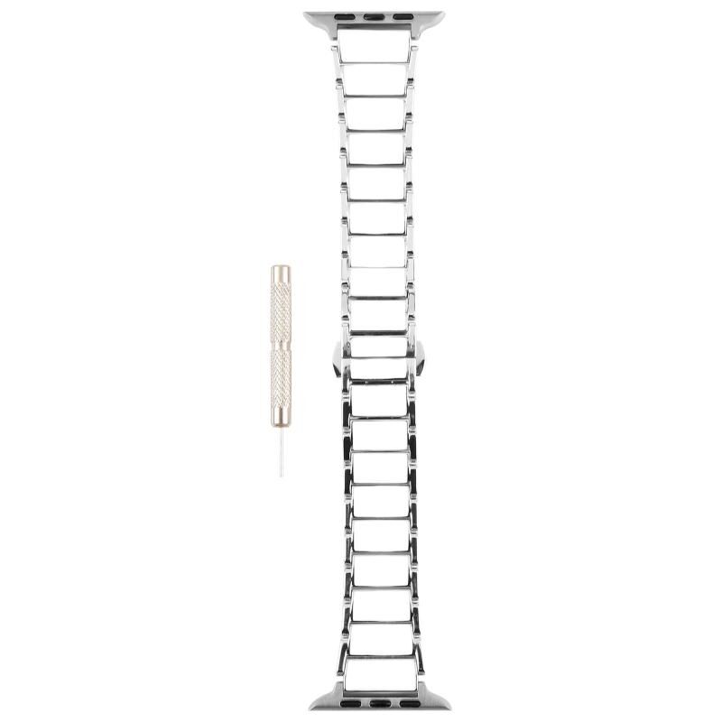 For Apple Watch 46mm / 49mm / 45mm / 44mm Three Beads Ceramics 18mm Steel Watch Band(Silver White)