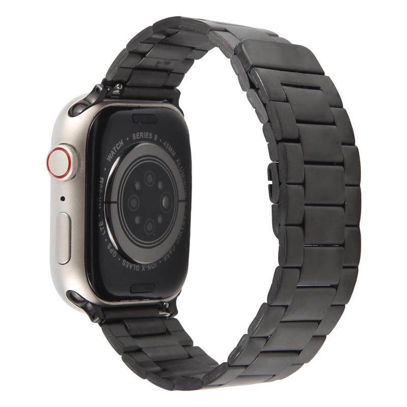 For Apple Watch 46mm / 49mm / 45mm / 44mm Three-beads Magnetic Steel Watch Band(Black)