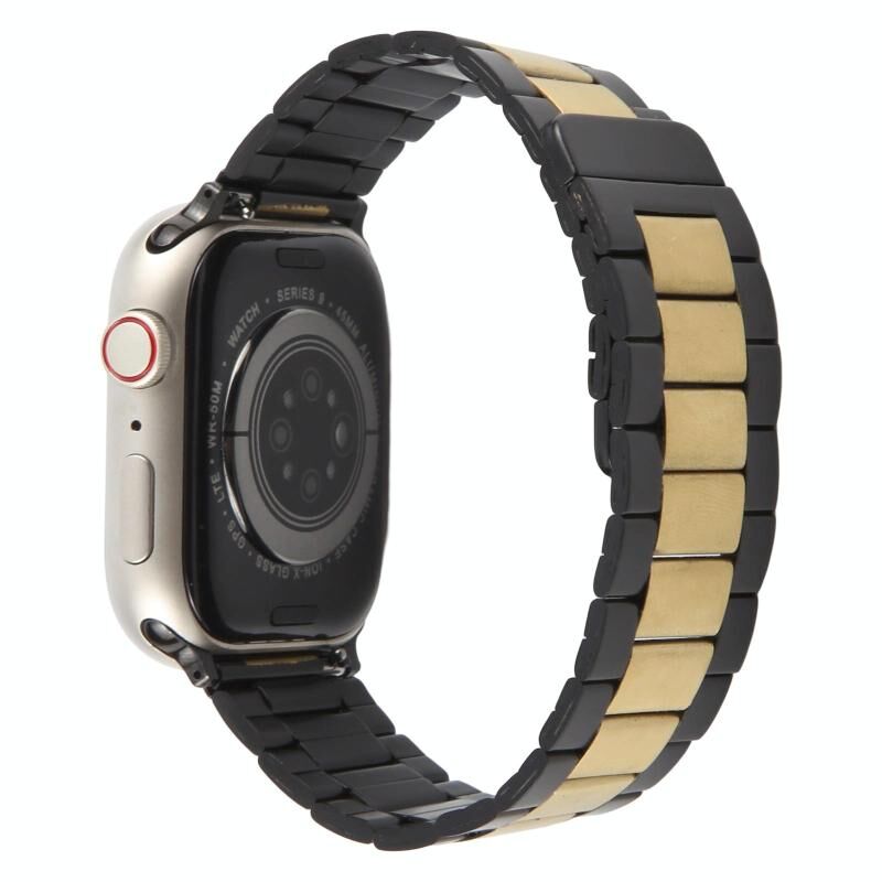 Για Apple Watch 46mm / 49mm / 45mm / 44mm Μαγνητικό Ατσάλινο Μπρατσέλι Ρολογιού με Τρεις Χάντρες (Μαύρο Χρυσό)