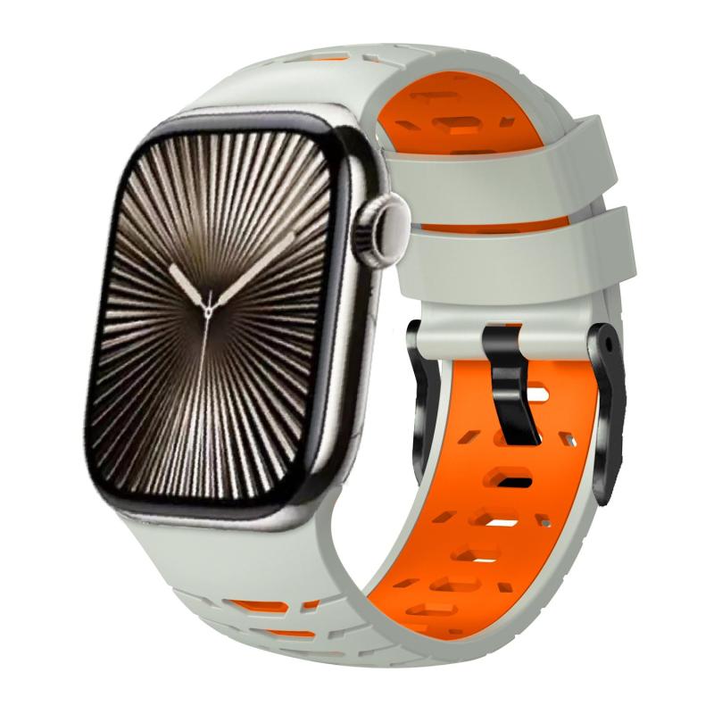 Λουράκι ρολογιού Apple Watch 46mm / 49mm / 45mm / 44mm Τραπεζοειδές, Δύο Χρωμάτων, Σιλικόνης (Γκρι Σκόνη Πορτοκαλί)