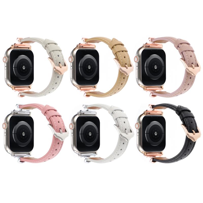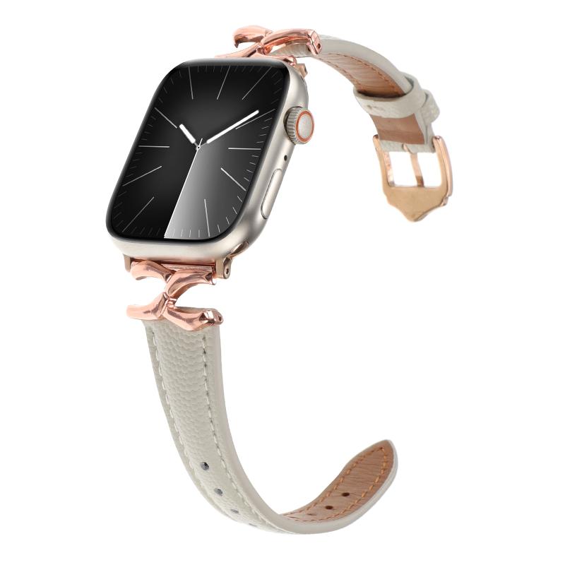 Για Apple Watch 46mm / 49mm / 45mm / 44mm Λουρί ρολογιού από γνήσιο δέρμα με αγκράφα σε σχήμα Χ (Μπεζ)