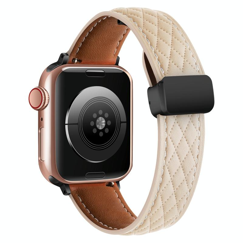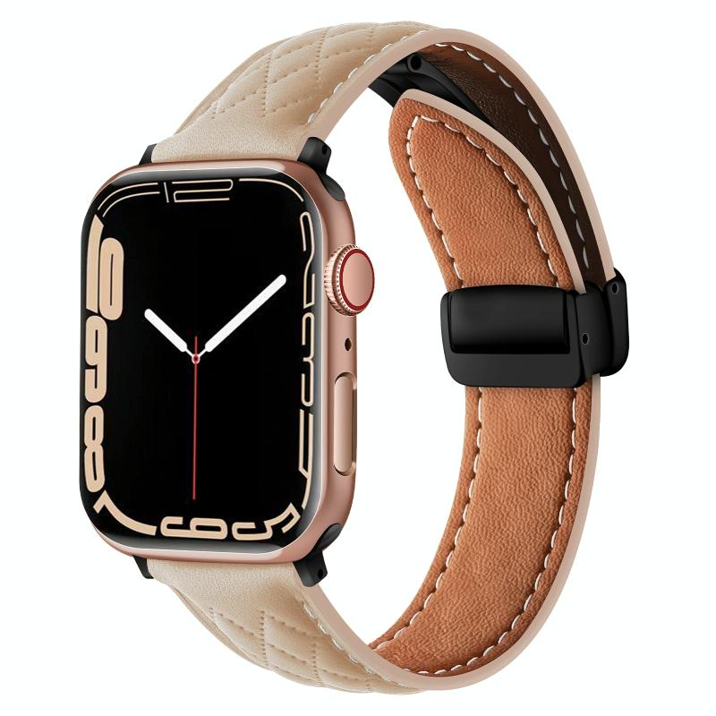 Για Apple Watch 5 40mm Δερμάτινο Λουρί με Κούμπωμα Πτυσσόμενο Ρόμβος (Βερίκοκο)