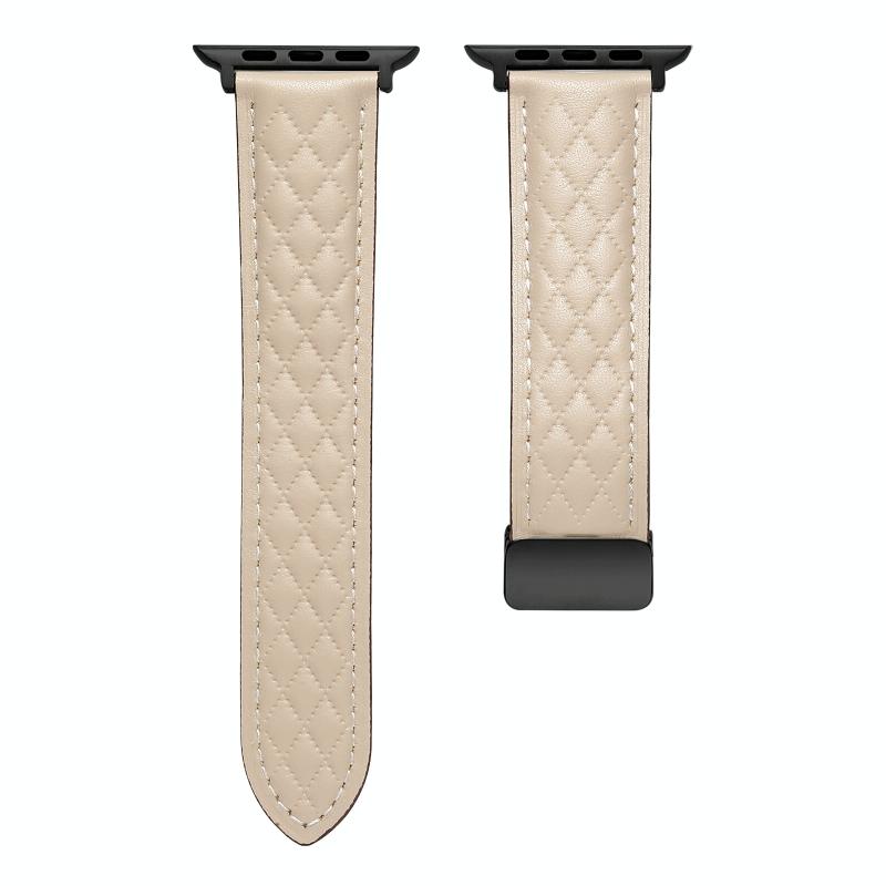 Για Apple Watch 5 44mm Πτυσσόμενη Αγκράφα Δερμάτινο Λουράκι Ρόμβος (Βερίκοκο)