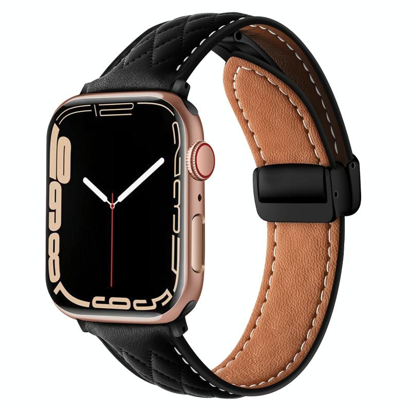 Για Apple Watch 5 44mm Δερμάτινο Λουράκι με Ρομβοειδές Δέσιμο και Αγκράφα Αναδίπλωσης (Μαύρο)
