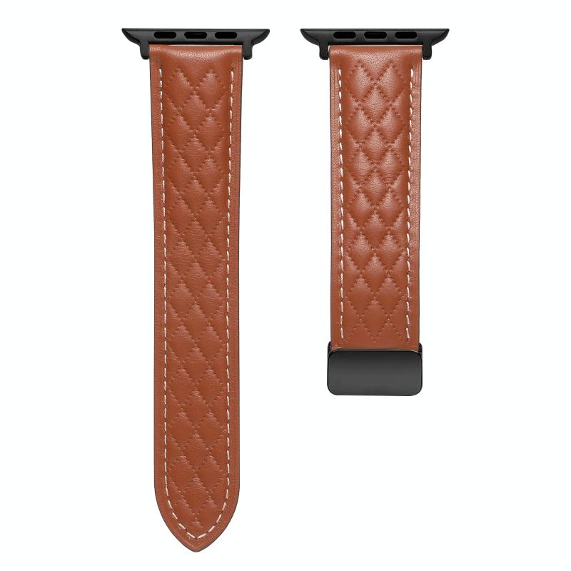 Για Apple Watch 5 44mm Δερμάτινο Λουράκι με Ρομβοειδές Δέσιμο και Αγκράφα Αναδίπλωσης (Καφέ)