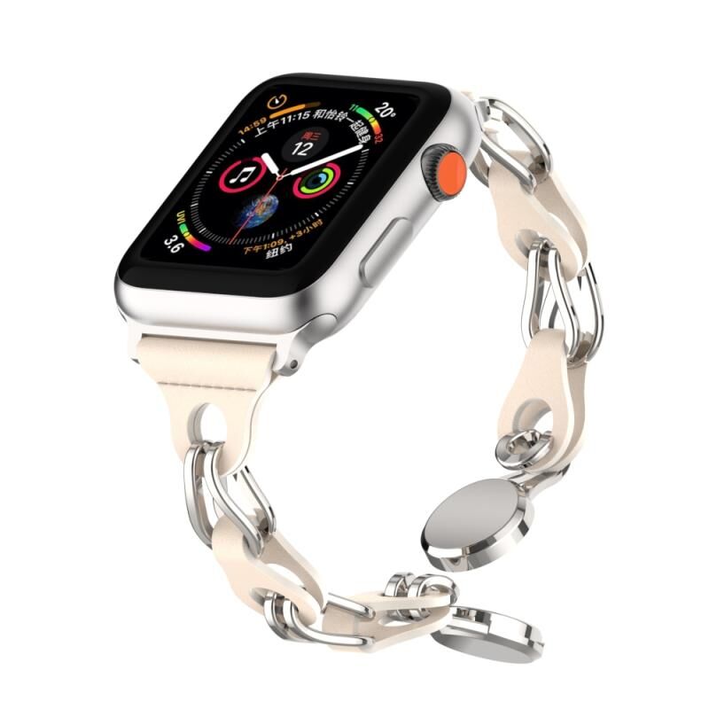 Για Apple Watch 5 44mm Κούμπωμα Μαγνητικό Δερμάτινο Λουρί Αλυσίδα (Χρώμα Starlight)