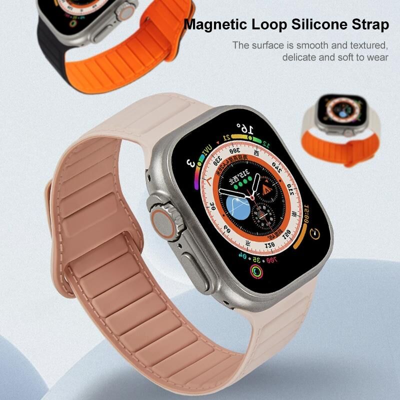 Για Apple Watch 5 44mm Λουρί Μαγνητικό Σιλικόνης (Γκρι Πορτοκαλί)