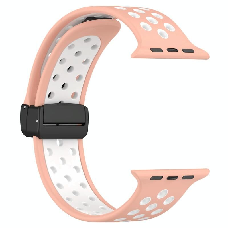 Για Apple Watch 5 44mm Μαγνητικό Κούμπωμα Σιλικόνης Λουράκι Ρολογιού (Ροζ Λευκό)