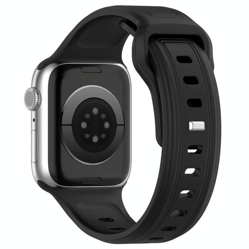 For Apple Watch 5 44mm Square Buckle Silicone Watch Band(Black)