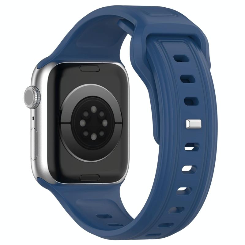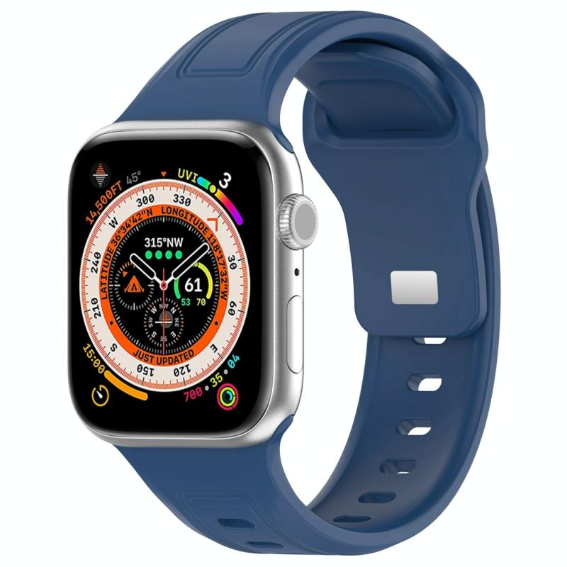 For Apple Watch 5 44mm Square Buckle Silicone Watch Band(Dark Blue)