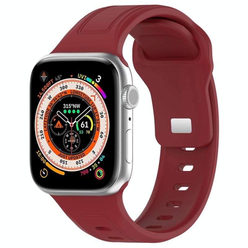 For Apple Watch 5 44mm Square Buckle Silicone Watch Band(Wine Red)