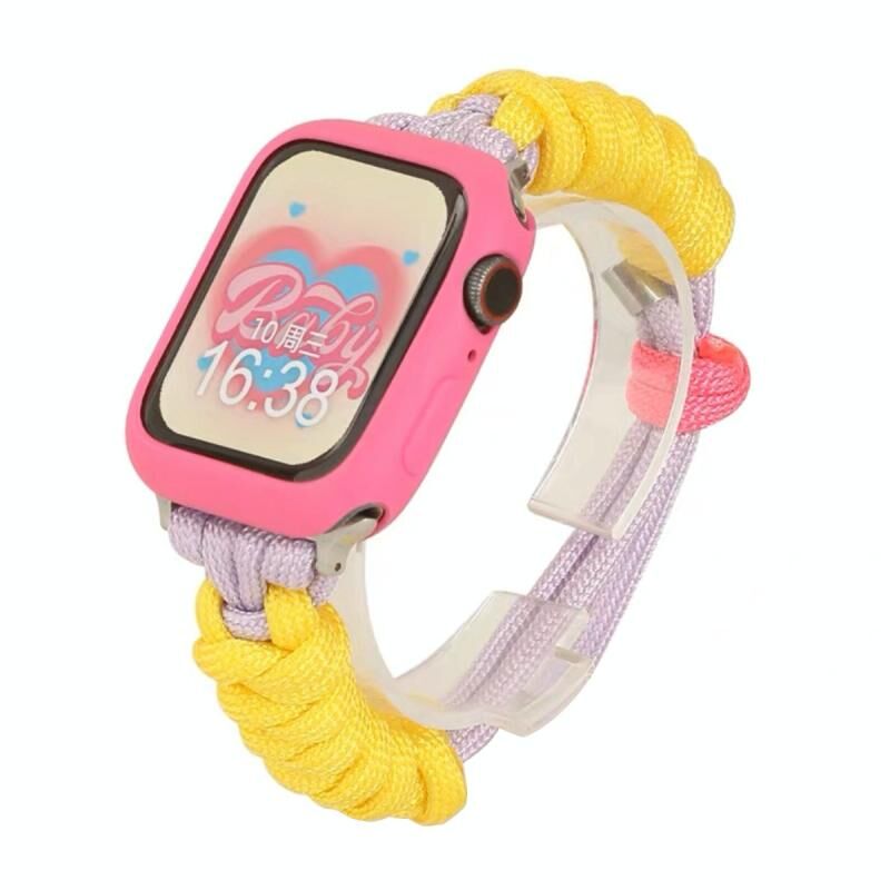 For Apple Watch 5 44mm Twist Knotted Nylon Watch Band(Yellow Purple)