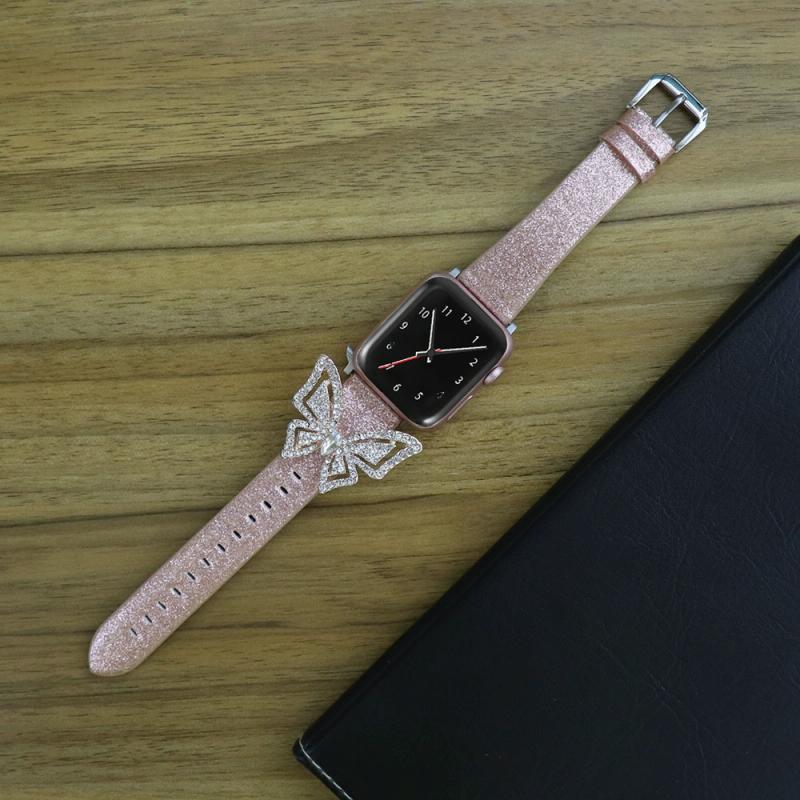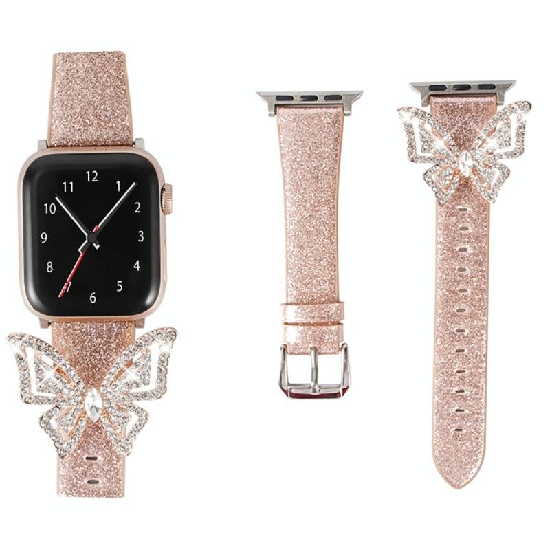 Για Apple Watch 5 & 4 44mm / 3 & 2 & 1 42mm Λουράκι ρολογιού με φιόγκο, γκλίτερ και διαμάντια (Χρυσό ροζ)