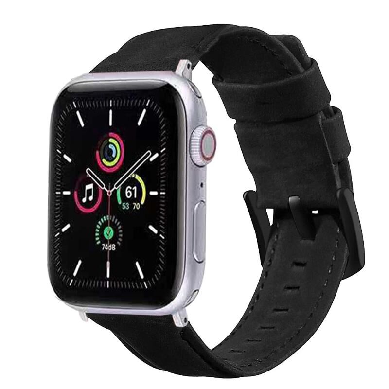 For Apple Watch 5 & 4 44mm / 3 & 2 & 1 42mm Leather Watch Band(Black)
