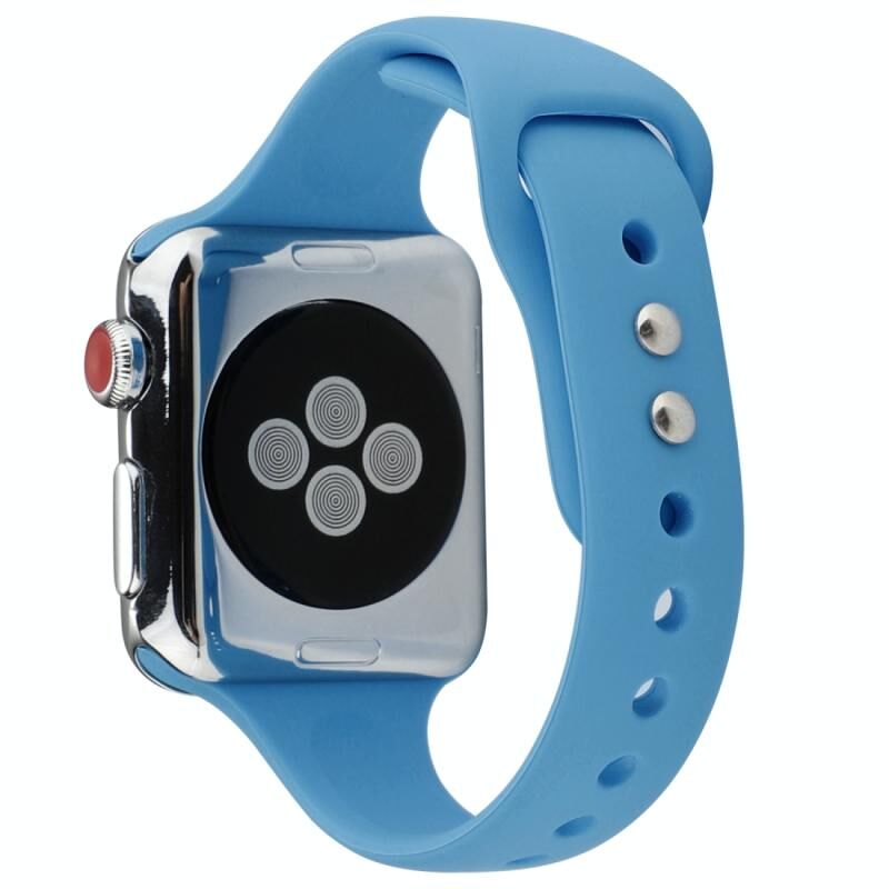 Για Apple Watch 5 & 4 44mm / 3 & 2 & 1 42mm Λεπτό λουρί ρολογιού σιλικόνης με διπλή αγκράφα (Μπλε τζιν)