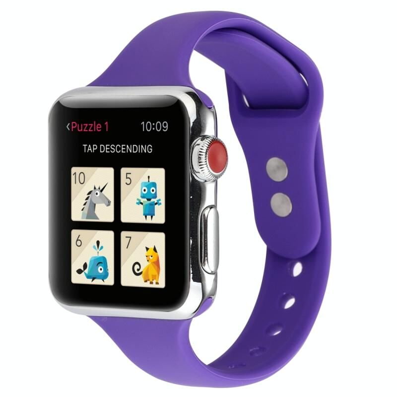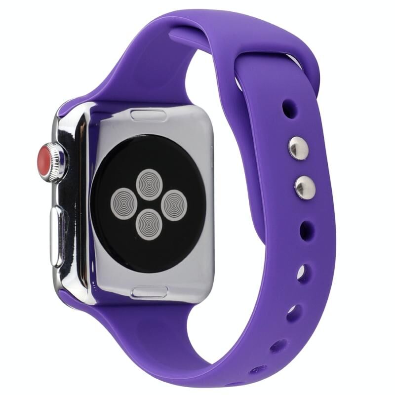 Για Apple Watch 5 & 4 44mm / 3 & 2 & 1 42mm Λεπτό λουρί ρολογιού σιλικόνης με διπλή αγκράφα (Μωβ)