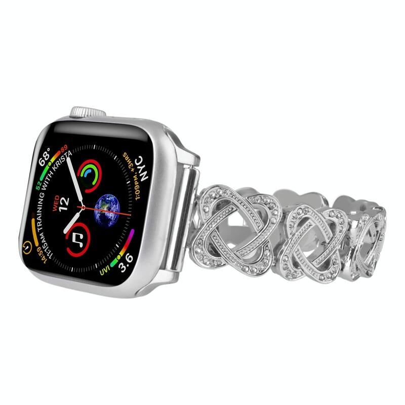 Για Apple Watch 6 40mm Λουράκι Μεταλλικό με Διαμάντια και Σχέδιο Σταυρωμένων Καρδιών (Ασημί)