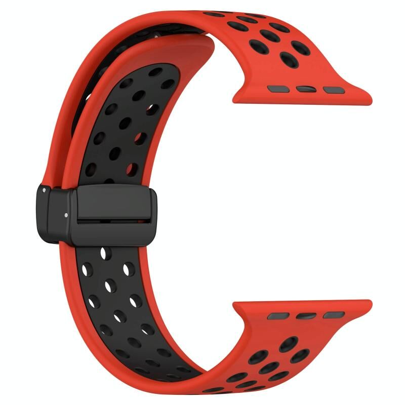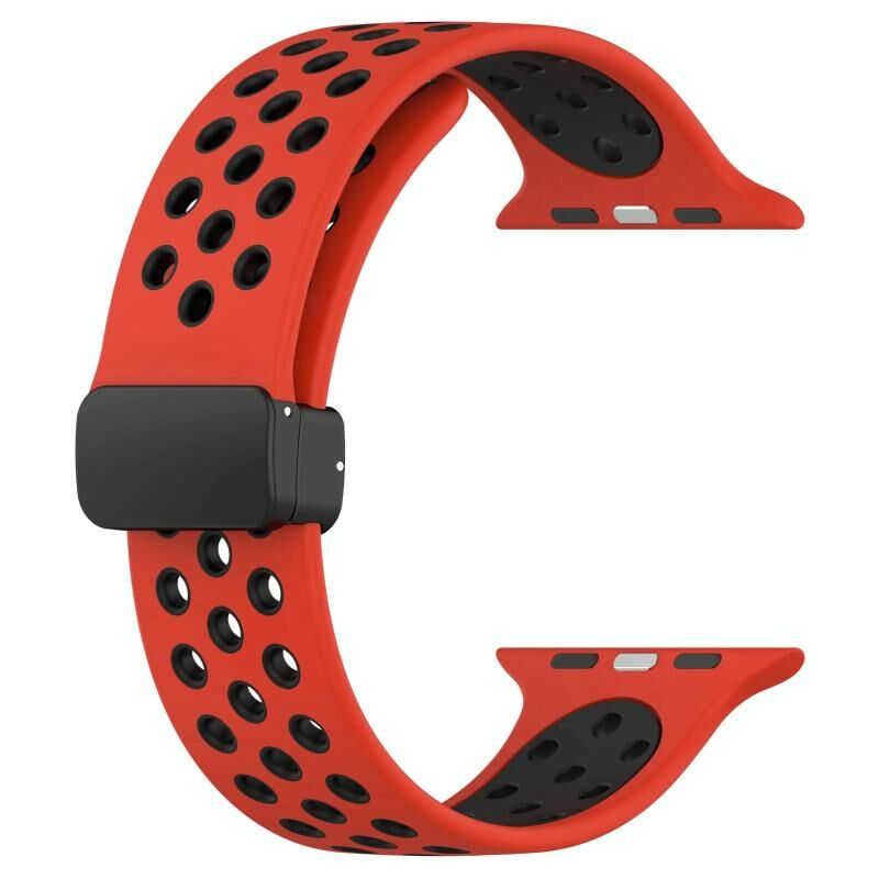 Για Apple Watch 6 40mm Μαγνητικό Κούμπωμα Σιλικόνης Λουράκι Ρολογιού (Κόκκινο-Μαύρο)