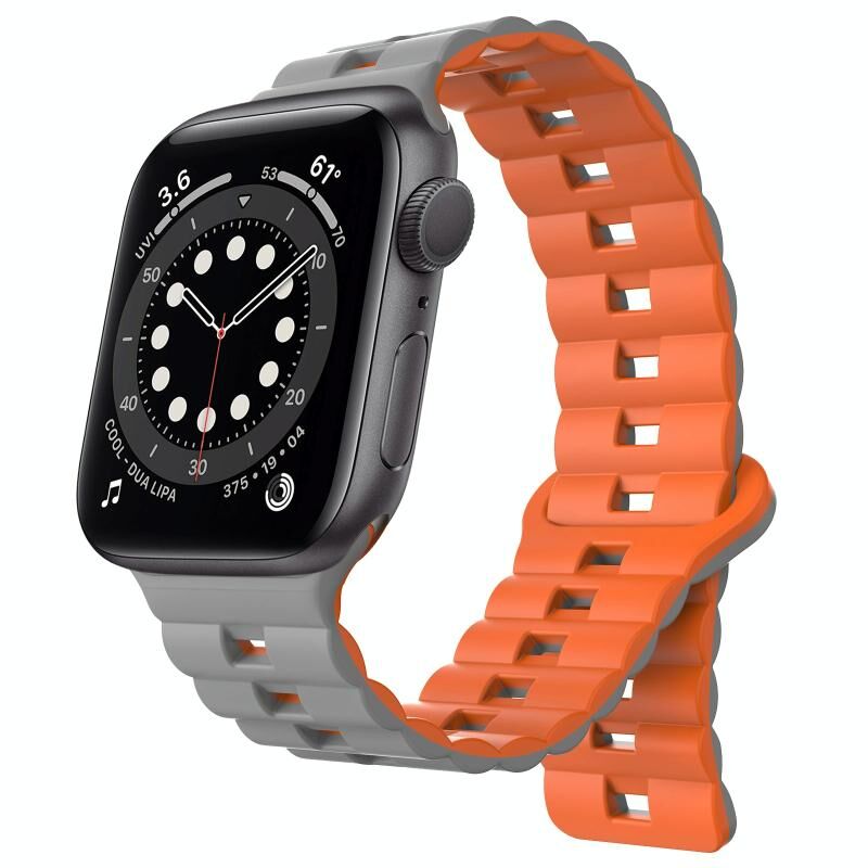 Για Apple Watch 6 40mm, Λουρί Σιλικόνης με Μαγνητικό Κούμπωμα Αντίστροφης Πόρπης, Δύο Χρωμάτων (Γκρι+Πορτοκαλί)