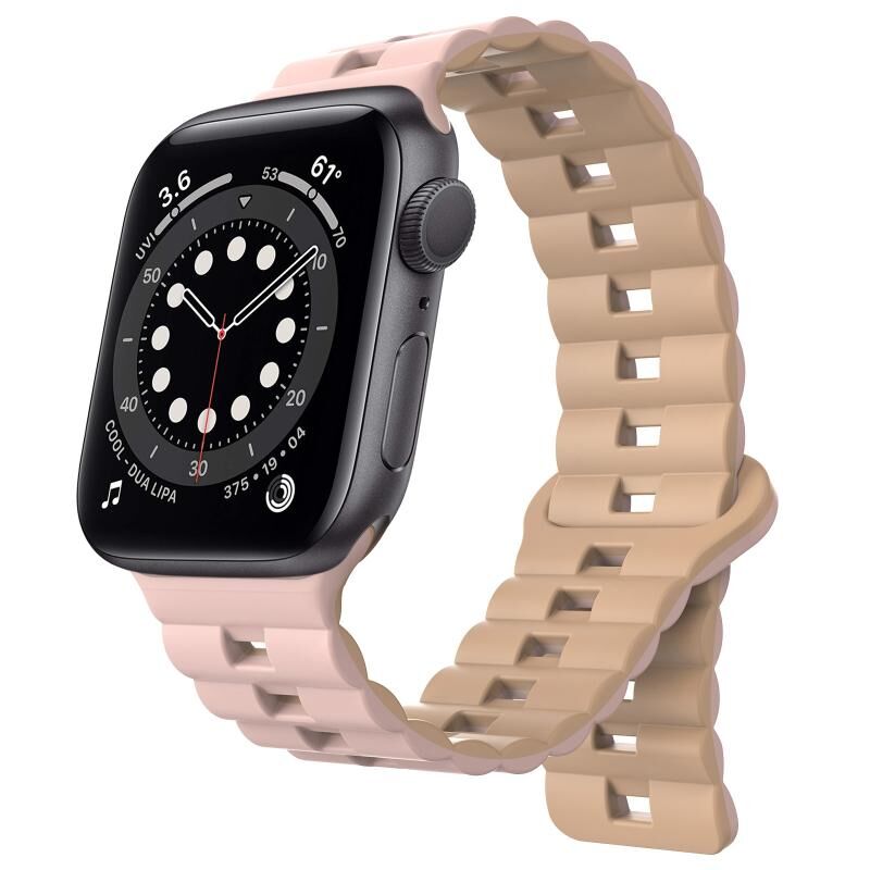 For Apple Watch 6 40mm Reverse Buckle Two Color Magnetic Silicone Watch Band(Pink+Grey)