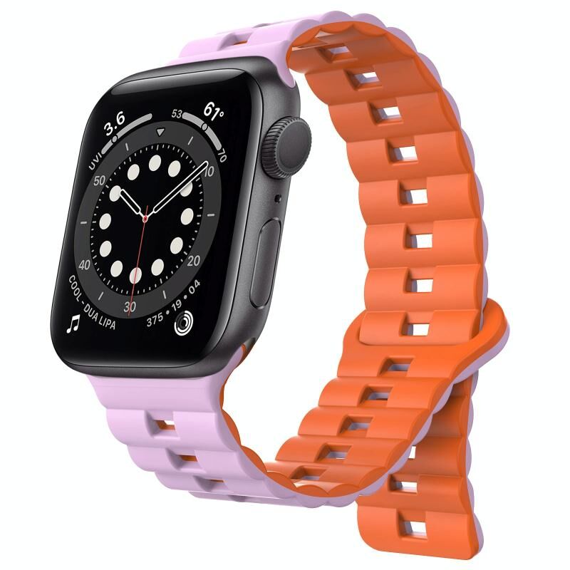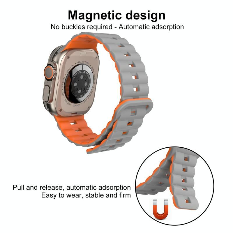 Για Apple Watch 6 40mm, Λουρί Σιλικόνης με Μαγνητικό Κούμπωμα Αντίστροφης Πόρπης, Δύο Χρωμάτων (Γκρι+Πορτοκαλί)
