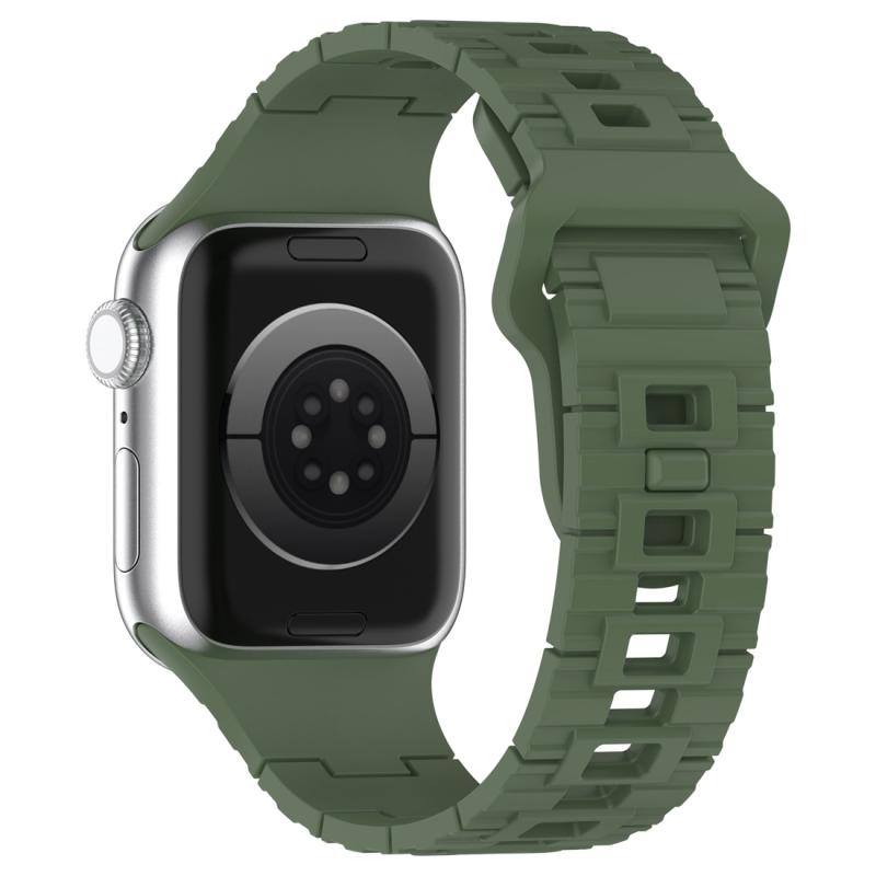 For Apple Watch 6 40mm Square Buckle Armor Style Silicone Watch Band(Dark Green)