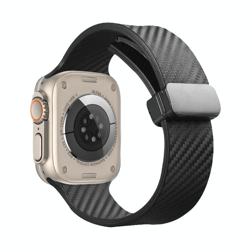 Για Apple Watch 6 44mm Λουρί Σιλικόνης με Μαγνητική Αγκράφα σε Σχέδιο Ίνας Άνθρακα (Μαύρο)