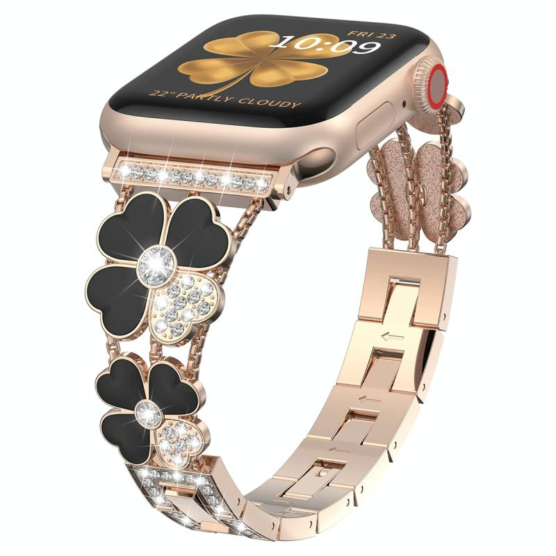 Για Apple Watch 6 44mm Λουρί Ρολογιού Petal Metal Diamond (Μαύρο+Λευκό)