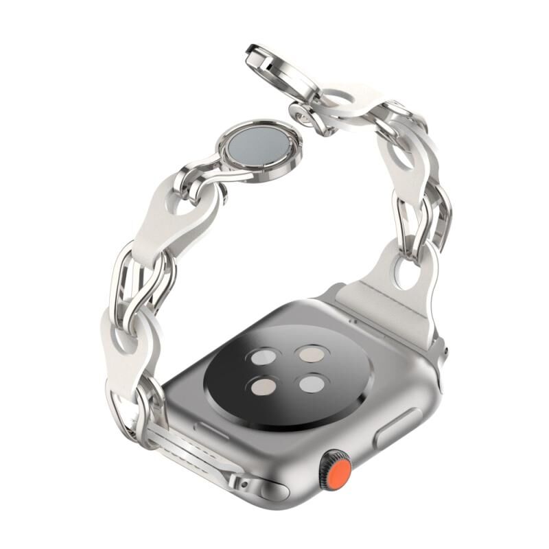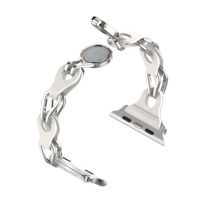 Για Apple Watch 7 41mm Κοίλος Δερμάτινος Αλυσίδα Μαγνητικό Κούμπωμα Λουράκι Ρολογιού (Λευκό)