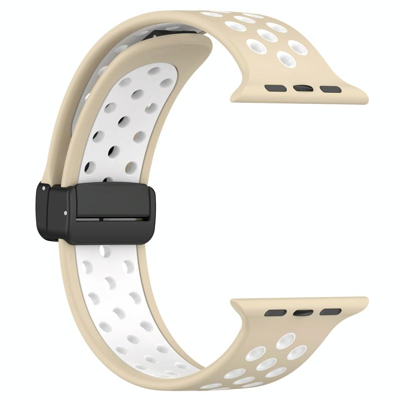 Για Apple Watch 7 41mm Μαγνητικό Κούμπωμα Σιλικόνης Λουράκι Ρολογιού (Λευκό Μαύρο)
