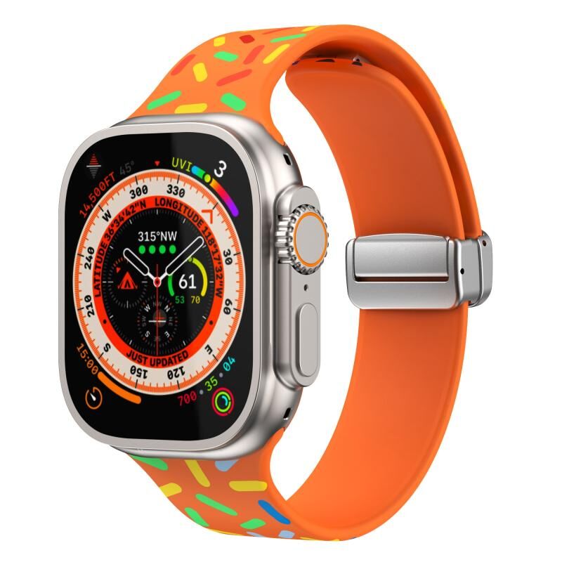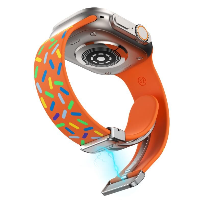 Για Apple Watch 7 41mm Λουράκι Σιλικόνης με Μαγνητικό Κούμπωμα Rainbow Dots (Λευκό)