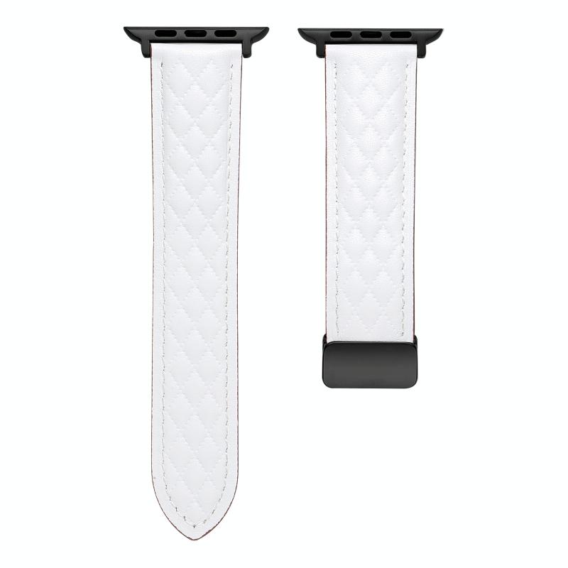 Για Apple Watch 7 45mm Δερμάτινο Λουρί με Κούμπωμα Πτυσσόμενο Ρόμβος (Λευκό)