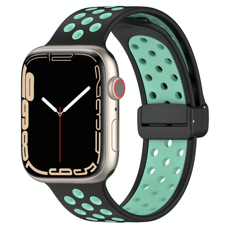 Για Apple Watch 7 45mm Μαγνητικό Κούμπωμα Σιλικόνης Λουράκι Ρολογιού (Λευκό Μαύρο)