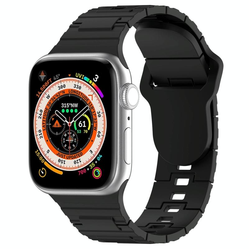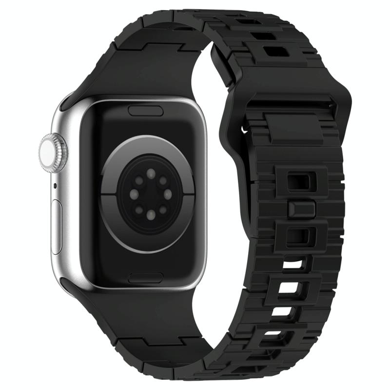 For Apple Watch 7 45mm Square Buckle Armor Style Silicone Watch Band(Black)