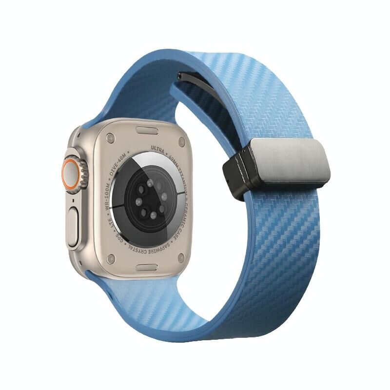 Για Apple Watch 8 41mm Λουρί Σιλικόνης με Μαγνητική Αγκράφα σε Σχέδιο Ίνας Άνθρακα (Μπλε)