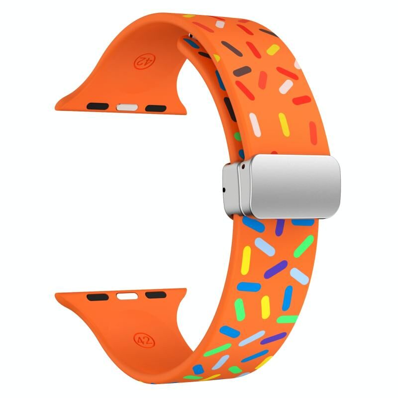Για Apple Watch 8 41mm Λουράκι Σιλικόνης με Μαγνητικό Κούμπωμα Rainbow Dots (Πορτοκαλί)