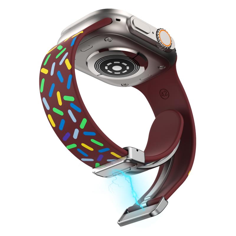 For Apple Watch 8 41mm Rainbow Dots Silicone Magnetic Buckle Watch Band(Wine)