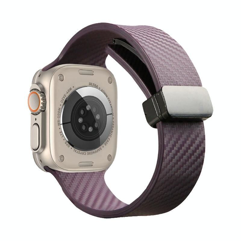 Για Apple Watch 8 45mm Λουρί Σιλικόνης με Μαγνητική Αγκράφα σε Σχέδιο Ίνας Άνθρακα (Μωβ)