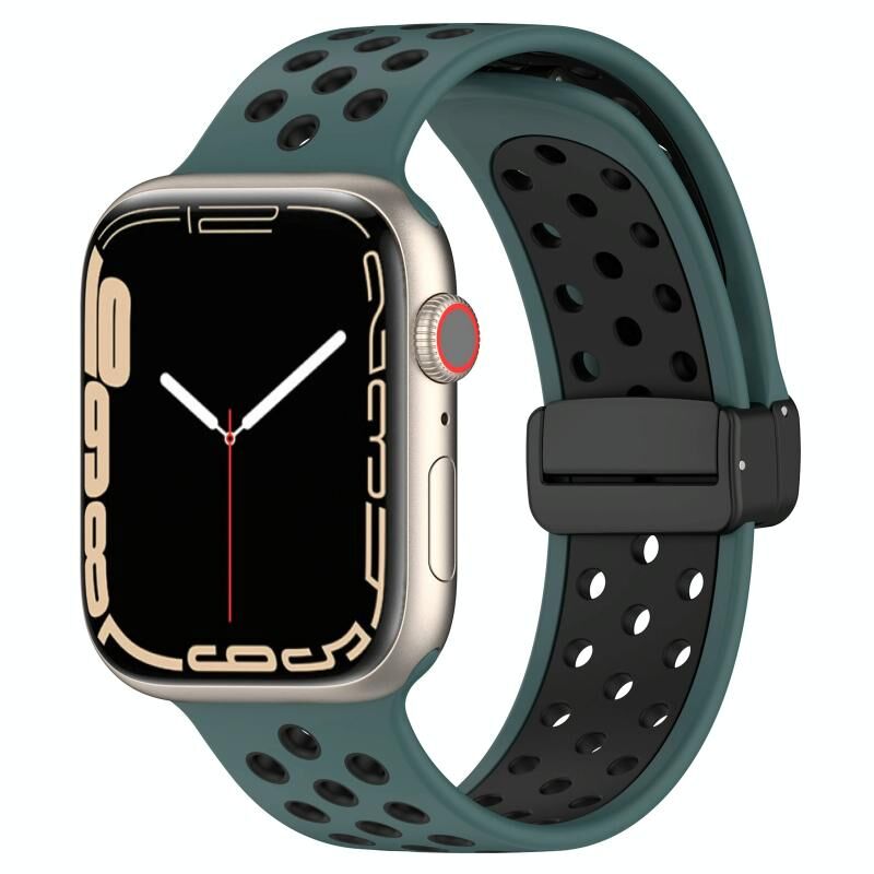 Για Apple Watch 8 45mm Μαγνητικό Κούμπωμα Σιλικόνης Λουράκι Ρολογιού (Λευκό Μαύρο)