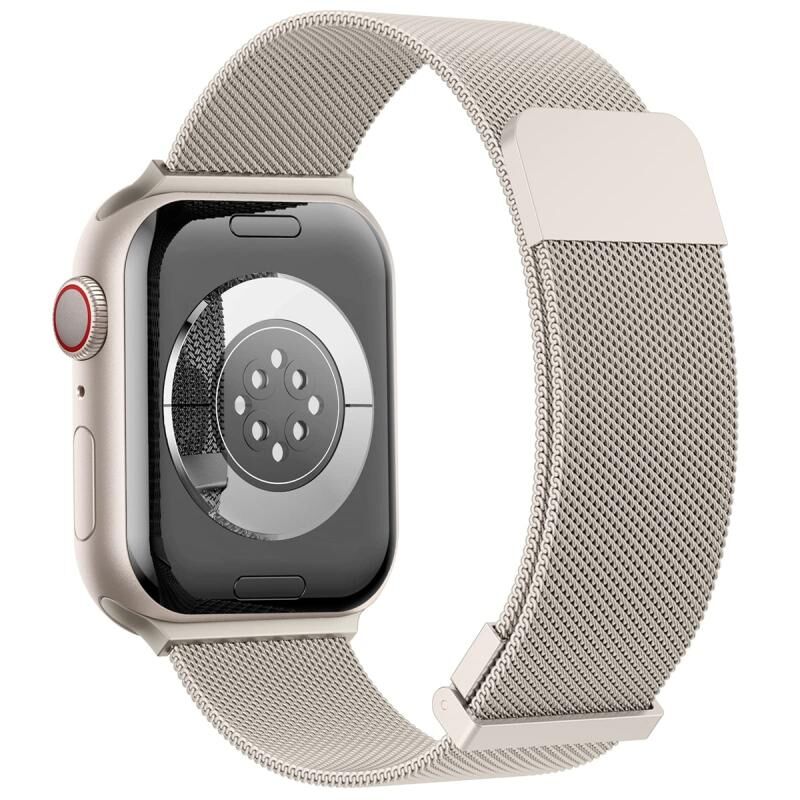 Για Apple Watch 8 45mm Μιλανέζικο Διπλό Μαγνητικό Διχτυωτό Ατσάλινο Λουράκι (Χρώμα Starlight)