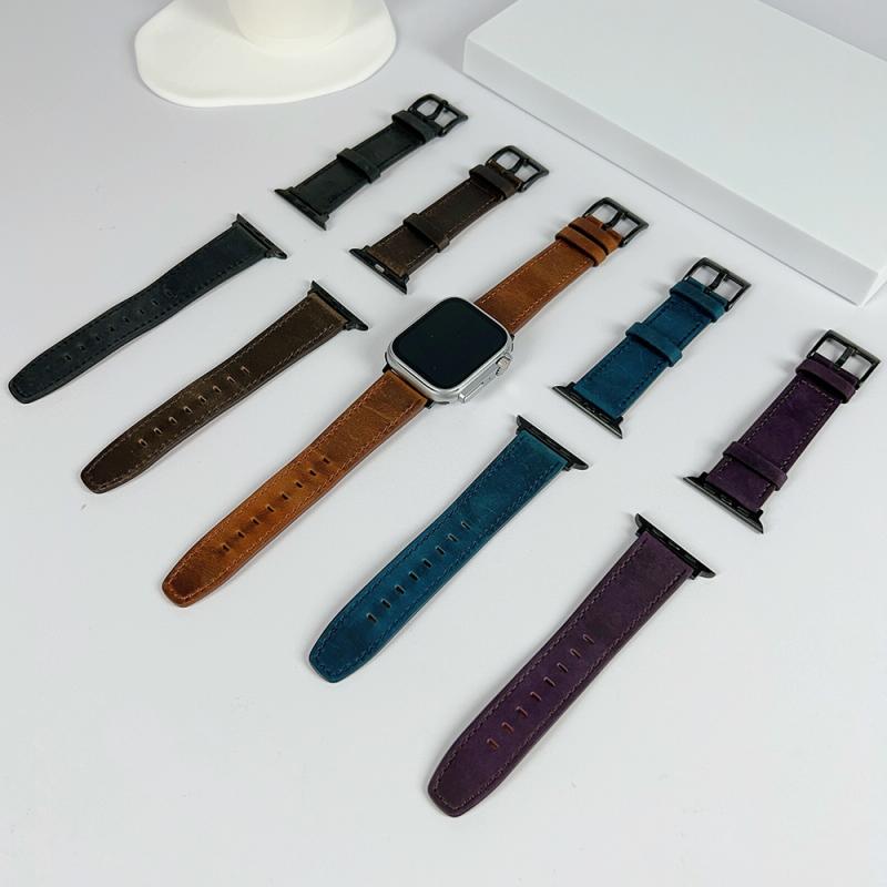 Για Apple Watch 8 45mm Δερμάτινο Λουράκι Ρετρό Υφής (Μπλε)