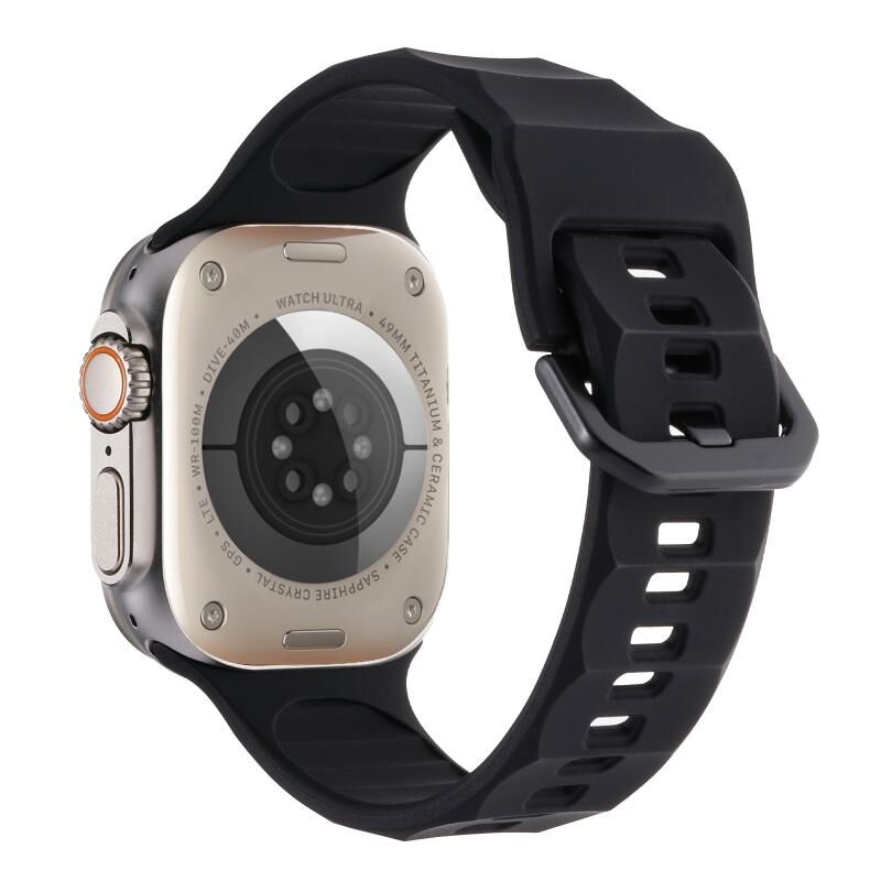 For Apple Watch 8 45mm Ripple Silicone Sports Watch Band(Black)